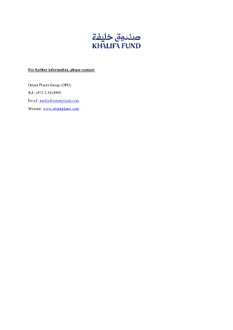 For further information, please contact: Orient Planet Group (OPG) Tel: +971 2 4418995 Email: media@orientplanet.com Website: www.orientplanet.com