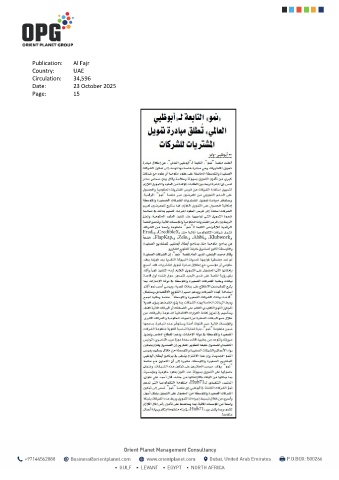 Publication: Al Fajr Country: UAE Circulation: 34,596 Date: 23 October 2025 Page: 15