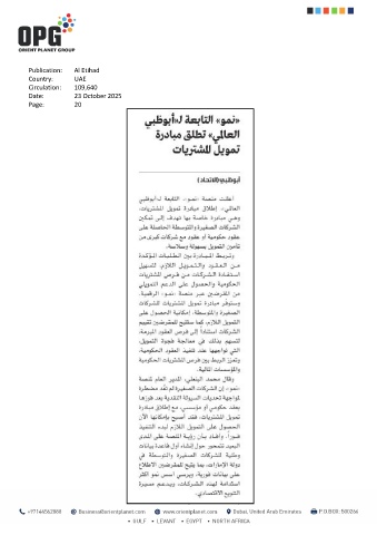 Publication: Al Etihad Country: UAE Circulation: 109,640 Date: 23 October 2025 Page: 20