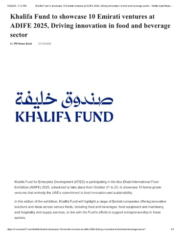 10/22/25, 1:13 PM Khalifa Fund to showcase 10 Emirati ventures at ADIFE 2025, Driving innovation in food and beverage sector - Middle East News …