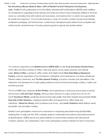 10/22/25, 1:13 PM Khalifa Fund to showcase 10 Emirati ventures at ADIFE 2025, Driving innovation in food and beverage sector - Middle East News …