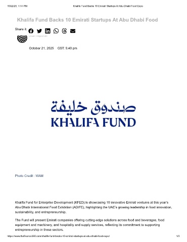 10/22/25, 1:14 PM Khalifa Fund Backs 10 Emirati Startups At Abu Dhabi Food Expo