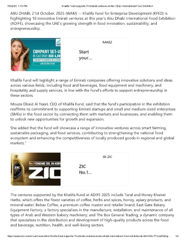 10/22/25, 1:15 PM Khalifa Fund supports 10 Emirati ventures at Abu Dhabi International Food Exhibition