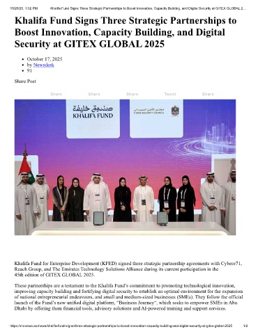 10/20/25, 1:52 PM Khalifa Fund Signs Three Strategic Partnerships to Boost Innovation, Capacity Building, and Digital Security at GITEX GLOBAL 2…
