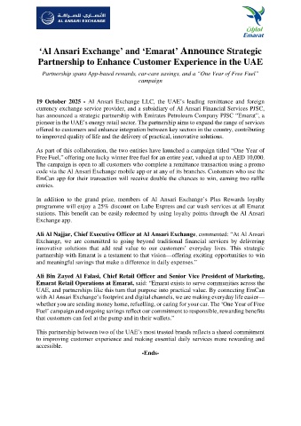 19 October 2025 - Al Ansari Exchange LLC, the UAE’s leading remittance and foreign