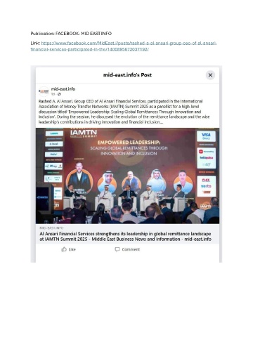 Publication: FACEBOOK- MID EAST INFO Link: https://www.facebook.com/MidEast.i/posts/rashed-a-al-ansari-group-ceo-of-al-ansari- financial-services-participated-in-the/1400895672037192/