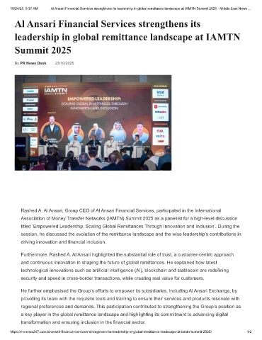 10/24/25, 9:37 AM Al Ansari Financial Services strengthens its leadership in global remittance landscape at IAMTN Summit 2025 - Middle East News …