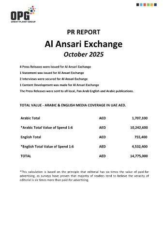 TOTAL VALUE - ARABIC & ENGLISH MEDIA COVERAGE IN UAE AED.