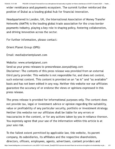 10/24/25, 9:37 AM PRESSR: Al Ansari Financial Services strengthens its leadership in global remittance landscape at IAMTN Summit 2025 — Tradin…