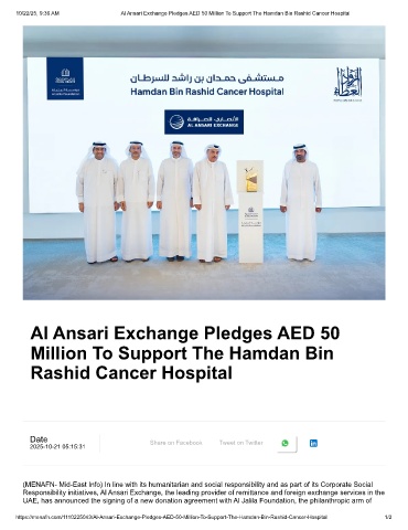 10/22/25, 9:36 AM Al Ansari Exchange Pledges AED 50 Million To Support The Hamdan Bin Rashid Cancer Hospital