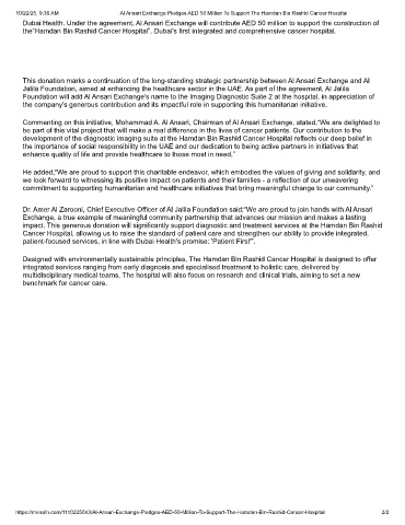 10/22/25, 9:36 AM Al Ansari Exchange Pledges AED 50 Million To Support The Hamdan Bin Rashid Cancer Hospital