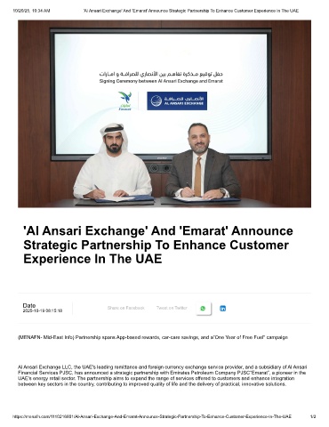 10/20/25, 10:34 AM 'Al Ansari Exchange' And 'Emarat' Announce Strategic Partnership To Enhance Customer Experience In The UAE