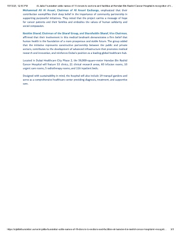 10/13/25, 12:56 PM Al Jalila Foundation adds names of 18 donors to sections and facilities at Hamdan Bin Rashid Cancer Hospital in recognition of t…