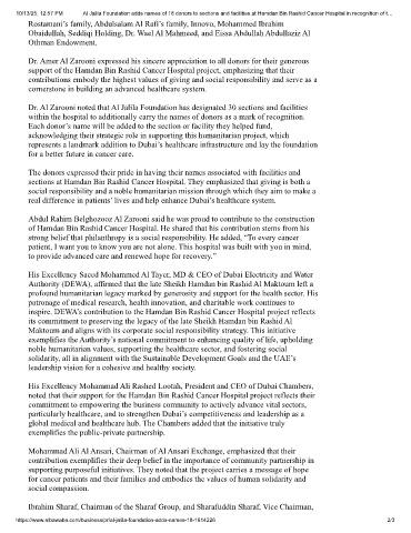 10/13/25, 12:57 PM Al Jalila Foundation adds names of 18 donors to sections and facilities at Hamdan Bin Rashid Cancer Hospital in recognition of t…