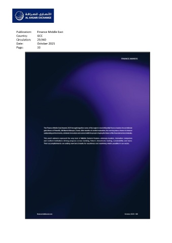 Publication: Finance Middle East Country: GCC Circulation: 29,940 Date: October 2025 Page: 33
