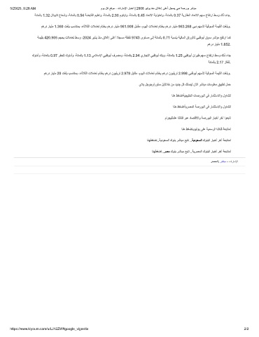كوﻧدأو ،ﺔﺋﺎﻣﻟﺎﺑ 0.97 رﻔﺣﻠﻟ كوﻧدأو ،ﺔﺋﺎﻣﻟﺎﺑ 1.13 ﻲﻣﻼﺳﻹا ﻲﺑظوﺑأ فرﺻﻣو ،ﺔﺋﺎﻣﻟﺎﺑ 2.94 يرﺎﺟﺗﻟا ﻲﺑظوﺑأ كﻧﺑو ،ﺔﺋﺎﻣﻟﺎﺑ 1.25 ﻲﺑظوﺑأ نارﯾط مﮭﺳ عﺎﻔﺗرا طﺳو كﻟذ ءﺎﺟ