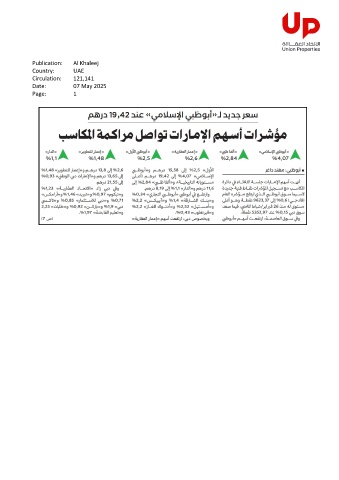 Publication: Al Khaleej Country: UAE Circulation: 121,141 Date: 07 May 2025 Page: 1