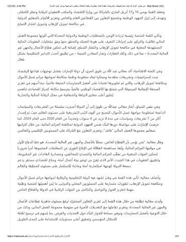ﺎﻬﻣاﺰﺘﻟا لالﺧ ﻦﻣ ،ﺔﻴﻟﺎﻤﻟا ﻢﺋاﺮﺠﻟا ﺔﺤﻓﺎﻜﻤﻟ ﺔﻴﻟوﺪﻟا دﻮﻬﺠﻟا ﻦﻤﺿ ءﺎ ّ ﻨﺒﻟا ﺎﻫرود ﺔﻠﺻاﻮﻣ ﻰﻠﻋ تارﺎﻣإلا ﺖﺻﺮﺣ