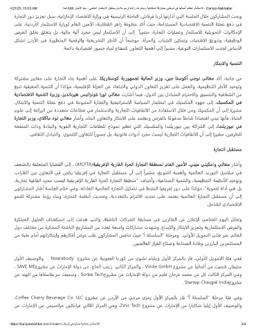 ةرﺎﺠﺘﻟا ﺮﻳزو ،يالﻛﺎﻣ دﻮﺗ ﻲﻟﺎﻌﻣ رﺎﺷأو ،ءﺎﻨﺒﻟا نوﺎﻌﺘﻟاو رﺎﻜﺘﺑالا ﻰﻠﻋ ﺪﻤﺘﻌﻳو صﺮﻔﻟﺎﺑ ﺎﻋﻮﻓﺪﻣ ًالﻣﺎﺷ ادﺎﺼﺘﻗا ﻲﻨﺒﺗ ﺎﻬﻧﺄﻓ ،ةﺎﻴﺤﻟا