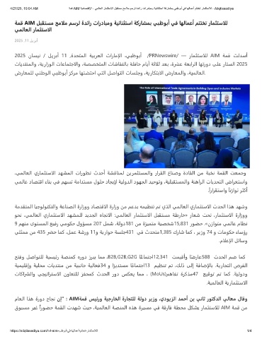 4/21/25, 10:04 AM ﺔﻣﻗ AIM ﺔﯾدﺎﺻﺗﻗﻹا - ﻲﻣﻟﺎﻌﻟا رﺎﻣﺛﺗﺳﻻا لﺑﻘﺗﺳﻣ ﺢﻣﻼﻣ مﺳرﻟ ةدﺋار تاردﺎﺑﻣو ﺔﯾﺋﺎﻧﺛﺗﺳا ﺔﻛرﺎﺷﻣﺑ ﻲﺑظوﺑأ ﻲﻓ ﺎﮭﻟﺎﻣﻋأ مﺗﺗﺧﺗ رﺎﻣﺛﺗﺳﻼﻟ - Aliqtissadiya