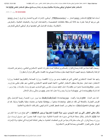 2025 نﺎﺴﯿﻧ / ﻞﯾﺮﺑأ 11 ,ةﺪﺤﺘﻤﻟا ﺔﯿﺑﺮﻌﻟا تارﺎﻣﻹا ،ﻲﺒظﻮﺑأ /PRNewswire/ — رﺎﺘﺴﻟا 2025 رﺎﻤﺜﺘﺳﻼﻟ AIM ﺔﻤﻗ ﺖﻟﺪﺳأ