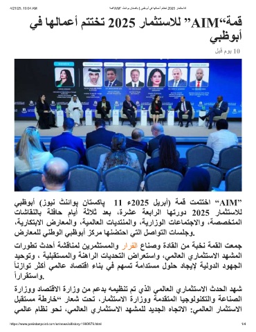 ﻲﺒظﻮﺑأ (زﻮﯿﻧ ﭧﻨﺋاﻮﭘ نﺎﺘﺴﮐﺎﭘ 11 ء2025 ﻞﯾﺮﺑأ) ﺔﻤﻗ ﺖﻤﺘﺘﺧا “AIM”
