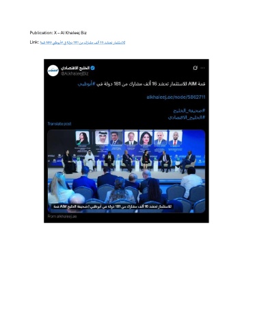 Publication: X – Al Khaleej Biz Link: ةمق AIM يبظوبأ# يف ةلود 181 نم كراشم فلأ 16 دشحت رامثتسلال