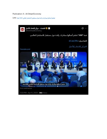 Publication: X – Al Etihad Economy Link: ةمق "AIM" يلماعلا رامثتسلاا لبقتسم لوح ةدئار تاردابمب اهلامعأ متتخت
