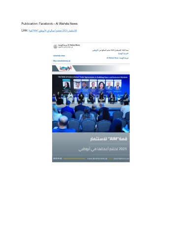 Publication: Facebook – Al Wahda News Link: ةمق“AIM” يبظوبأ# يف اهلامعأ متتخت 2025 رامثتسلال