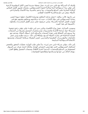 4/21/25, 2:27 PM «ﺔﯾﻛﻼﮭﺗﺳﻻاو ﺔﯾﺋاذﻐﻟا تﺎﺟﺗﻧﻣﻟا ةدوﺟ ﻰﻠﻋ ﺔﺑﺎﻗرﻟا ززﻌﺗ «دﺎﺻﺗﻗﻻا