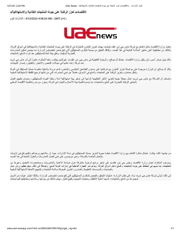 4/21/25, 2:46 PM UAE News - ﺔﯾﻛﻼﮭﺗﺳﻻاو ﺔﯾﺋاذﻐﻟا تﺎﺟﺗﻧﻣﻟا ةدوﺟ ﻰﻠﻋ ﺔﺑﺎﻗرﻟا ززﻌﺗ «دﺎﺻﺗﻗﻻا» - تارﺎﻣﻹا رﺎﺑﺧأ