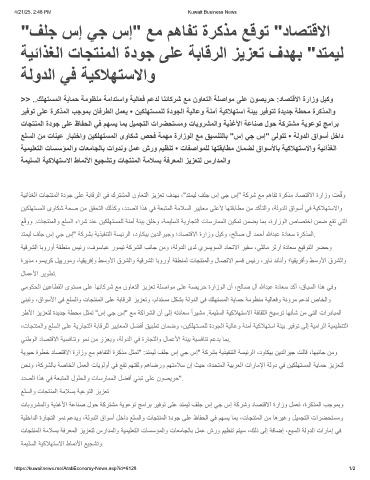 ﺔﯾﺋاذﻐﻟا تﺎﺟﺗﻧﻣﻟا ةدوﺟ ﻰﻠﻋ ﺔﺑﺎﻗرﻟا ﻲﻓ كرﺗﺷﻣﻟا نوﺎﻌﺗﻟا زﯾزﻌﺗ فدﮭﺑ ،"دﺗﻣﯾﻟ فﻠﺟ سإ ﻲﺟ سإ" ﺔﻛرﺷ ﻊﻣ مھﺎﻔﺗ ةرﻛذﻣ دﺎﺻﺗﻗﻻا ةرازو تﻌ ّ ﻗو