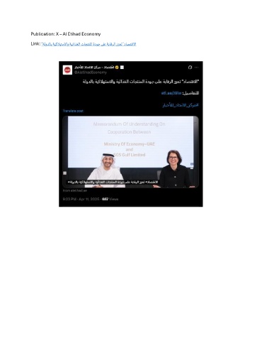 Publication: X – Al Etihad Economy Link: "ةلودلاب ةيكلاهتسلااو ةيئاذغلا تاجتنلما ةدوج ىلع ةباقرلا ززعت "داصتقلاا
