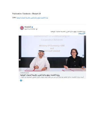 Publication: Facebook – Sharjah 24 Link: ةينطولا تاجتنلما ةيسفانت زيزعتل ةركذم عقوت داصتقلاا ةرازو