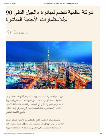4/21/25, 10:14 AM 90 ةرﺷﺎﺑﻣﻟا ﺔﯾﺑﻧﺟﻷا تارﺎﻣﺛﺗﺳﻼﻟ ﻲﻟﺎﺗﻟا لﯾﺟﻟا» ةردﺎﺑﻣﻟ مﺿﻧﺗ ﺔﯾﻣﻟﺎﻋ ﺔﻛرﺷ»