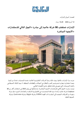 تارﺎﻤﺜﺘﺳﻼﻟ ﻟﺎﺘﻟا ﻞﻴﺠﻟا» ةردﺎﺒﻣ ﻟإ ﺔﻴﻤﻟﺎﻋ ﺔﻛﺮﺷ 90 ﺐﻄﻘﺘﺴﺗ تارﺎﻣﻹا