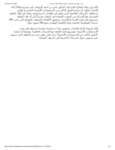 ﻞﺻاﻮﺗ ةﺮﺷﺎﺒﻤﻟا ﺔﯿﺒﻨﺟﻷا تارﺎﻤﺜﺘﺳﻻا ﻦﻣ ﻲﻟﺎﺘﻟا ﻞﯿﺠﻟا ةردﺎﺒﻣ نأ ،(ماو) تارﺎﻣﻹا