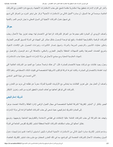 تارﺎﻣﻹا ﺔﻟود ﻰﻟإ ةدﺋارﻟا ﺔﯾﻣﻟﺎﻌﻟا تﺎﻛرﺷﻟا بذﺟ ﻰﻟإ ﻰﻌﺳﺗ ثﯾﺣ ،ﻲﺟﯾﺗارﺗﺳإ كﯾرﺷﻛ ةردﺎﺑﻣﻟا ﻰﻟإ.