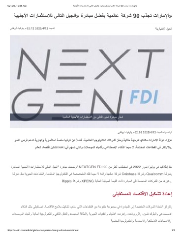 4/21/25, 10:15 AM ﺔﯾﺑﻧﺟﻷا تارﺎﻣﺛﺗﺳﻼﻟ ﻲﻟﺎﺗﻟا لﯾﺟﻟا» ةردﺎﺑﻣ لﺿﻔﺑ ﺔﯾﻣﻟﺎﻋ ﺔﻛرﺷ 90 بذﺟﺗ تارﺎﻣﻹا»