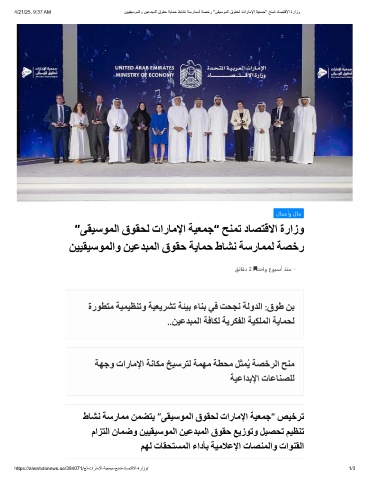 ”ﻰﻘﯿﺳﻮﻤﻟا قﻮﻘﺤﻟ تارﺎﻣﻹا ﺔﯿﻌﻤﺟ“ ﺢﻨﻤﺗ دﺎﺼﺘﻗﻻا ةرازو