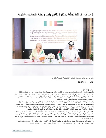 ومنلا ةلجع عفدل اًقاطن عسوأ دوهج راطإ يف ةركذملا عيقوت يتأيو .ادنلريأو ةدحتملا ةيبرعلا تاراملإا ةلود نيب ةكرتشم ةيداصتقا