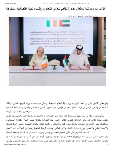 4/18/25, 11:12 AM نطوﻟا ةدﯾرﺟ › ﺔﻛرﺗﺷﻣ ﺔﯾدﺎﺻﺗﻗا ﺔﻧﺟﻟ ءﺎﺷﻧإو نوﺎﻌﺗﻟا زﯾزﻌﺗﻟ مھﺎﻔﺗ ةرﻛذﻣ نﺎﻌ ّ ﻗوﺗ ادﻧﻟرﯾأو تارﺎﻣﻹا