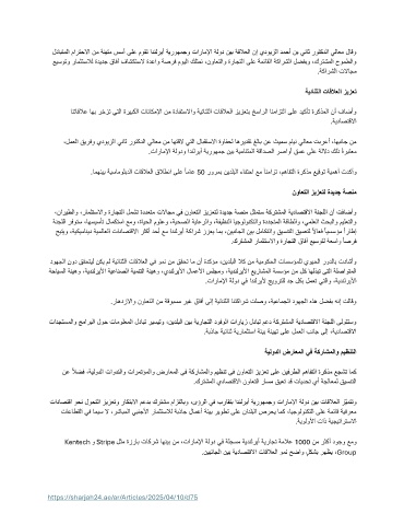 ت ادجتسملاو جماربلا لوح تامولعملا لدابت ريسيتو ،نيدلبلا نيب ةيراجتلا دوفولا تارايز لدابت معد ةكرتشملا ةيداصتقلاا ةنجللا ىلوتتسو
