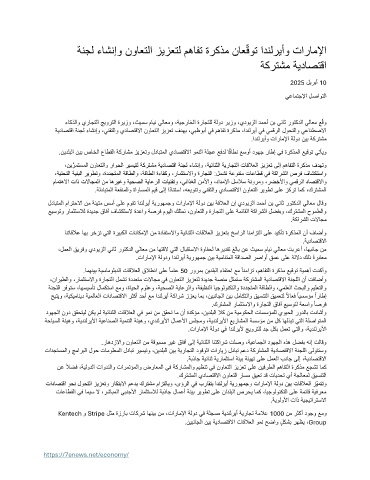 تاداصتقا وحن لوحتلا زيزعتو راكتبلاا معدب كرتشم مازتلابو ،ىؤرلا يف براقتب ادنلريأ ةيروهمج و تاراملإا ةلود نيب تاقلاعلا زّيمتتو