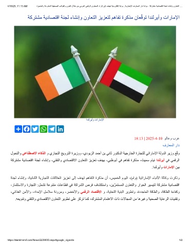 ﺔﻛﺮﺘﺸﻣ ﺔﯾدﺎﺼﺘﻗا ﺔﻨﺠﻟ ءﺎﺸﻧإو ،ﻲﻨﻘﺘﻟاو يدﺎﺼﺘﻗﻻا نوﺎﻌﺘﻟا ﺰﯾﺰﻌﺗ فﺪﮭﺑ ،ﻲﺒظﻮﺑأ ﻲﻓ ﻢھﺎﻔﺗ ةﺮﻛﺬﻣ ،ﺚﯿﻤﺳ مﺎﯿﻧ اﺪﻨﻟﺮﯾأ ﻲﻓ ﻲﻤﻗﺮﻟا