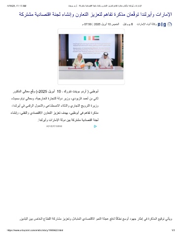 .ادﻧﻟرﯾأو تارﺎﻣﻹا ﺔﻟود نﯾﺑ ﺔﻛرﺗﺷﻣ ﺔﯾدﺎﺻﺗﻗا ﺔﻧﺟﻟ