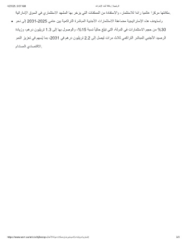 ةدﺎﯾزو ،مھرد نوﯾﻠﯾرﺗ 1.3 ﻰﻟإ ﺎﮭﺑ لوﺻوﻟاو ،%15 ﺔﺑﺳﻧ ً ﺎﯾﻟﺎﺣ ﻎﻠﺑﺗ ﻲﺗﻟا ،ﺔﻟودﻟا ﻲﻓ تارﺎﻣﺛﺗﺳﻻا مﺟﺣ نﻣ %30