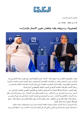 ﺔﻟود ﻓ لﺎﻤﻋﻷا ﺔﺌﻴﺑ تارﻮﻄﺗ ﻠﻋ ءﻮﻀﻟا ﻂﻴﻠﺴﺘﻟ ًاﺮﻤﺗﺆﻣ ،ءﺎﻌﺑرﻷا ،«ﻚﻨﺑ ﻪﺸﺘﻳود» ﻊﻣ نوﺎﻌﺘﻟﺎﺑ «ﺎﻴﺑﻮﺘﺴﻔﻧإ» ﺖﻤﻈﻧ