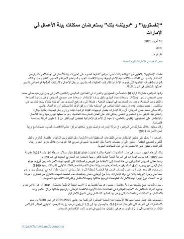 .ةحومطلا ةيداصتقلاا ةكارشلاو رامثتس لال ةهجو اهتناكم خيسرتل ةلصاوتملا تاراملإا ةلود دوهج زربأ ثدحلا اذه نأ