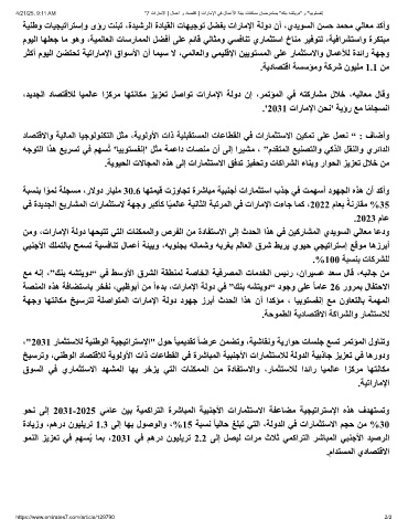 ،"2031 رﺎﻤﺜﺘﺳﻼﻟ ﺔﯿﻨطﻮﻟا ﺔﯿﺠﯿﺗاﺮﺘﺳﻹا" لﻮﺣ ًﺎﯿﻤﯾﺪﻘﺗ ًﺎﺿﺮﻋ ﻦﻤﻀﺗو ،ﺔﯿﺷﺎﻘﻧو ﺔﯾراﻮﺣ تﺎﺴﻠﺟ ﻊﺴﺗ ﺮﻤﺗﺆﻤﻟا لوﺎﻨﺗو